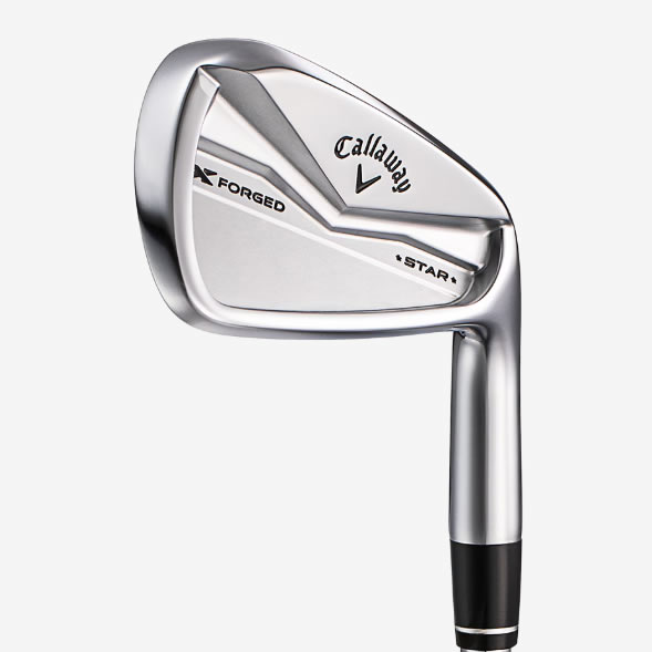 キャロウェイゴルフ X FORGED STAR 2024年モデル アイアンの特徴「X FORGED STARアイアン」が2021年以来のリニューアルを果たし、3代目モデルとして登場です。従来と変わらない完全な1ピース軟鉄(S20C)鍛造で、構造もX FORGEDアイアンと同様のデザインが施されたシンプルなキャビティバックを採用。ただし、肉厚な部分の面積をより小さくまとめるなど、一定のやさしさも充分に考えられています。なかでも注目は、フェース外周の造形です。寛容性を求めて、ややラージサイズのヘッドとしている一方、エッジに面取りを施したことで、プレーヤーには適度な大きさに見えるようになっています。細部にまで配慮が行き届いており、完成度の高まりを感じさせます。ソールには、抜けの良さを追求したトライレベル・ソールデザインを採用。I#7がロフト29度と、ややストロングな設定となっており、「単一素材のフォージドなのに、飛ぶ」という最大の特徴も不変。番手はI#4〜9、PW。