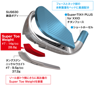 | <素材> | フェース:チタン ボディ(5I-8I):SUS630ステンレス+タングステンニッケルソールウェイト+高比重タングステンニッケルインナーウェイト ボディ(9I-PW):SUS630ステンレス+タングステンニッケルソールウェイト ボディ(AW-SW):SUS630ステンレス |