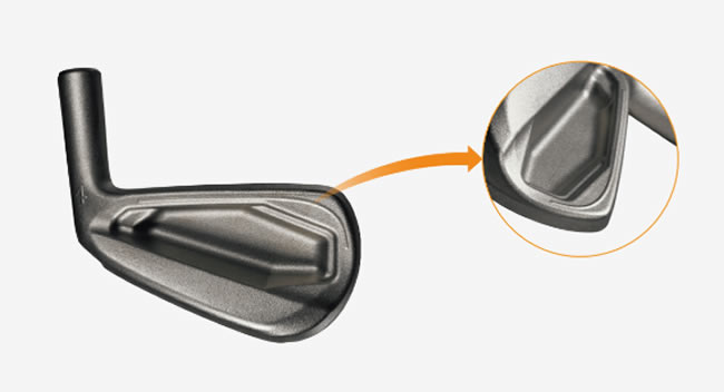 コンデンス鍛造当社独自の新設計、コンデンス鍛造をバックフェース上部に施すことで、フレームの強度が向上。