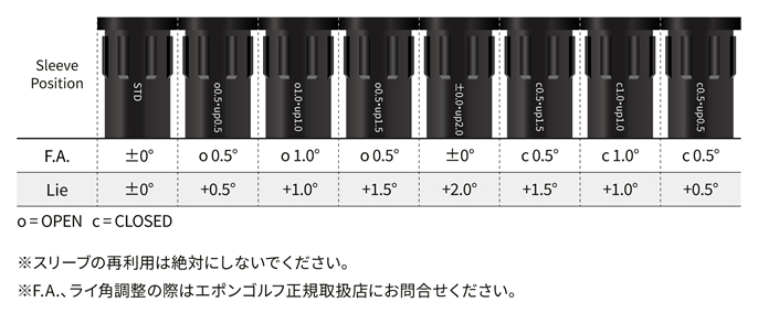 | ライ・ロフト角度変更 | ライ・ロフト角度の調整は±1度可能です。 通常組立納期約2週間です |