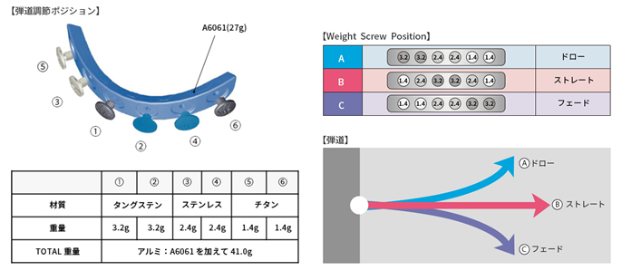 | アジャスタブルウエイト | 1.4g×2個 2.4g×2個 3.2g×2個 |