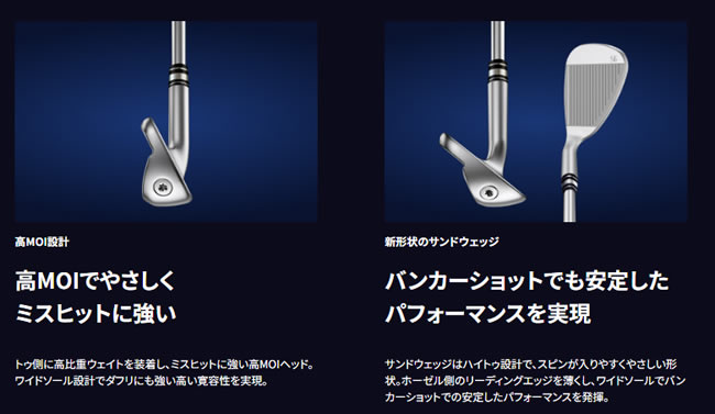 ピン G440 アイアンの特徴「衝撃の飛び重心」。いまだ見ぬ飛距離を。これまで高MOI、深低重心を追求し、ブレない飛びを実現してきたPING。だが、さらなる進化のために新たな飛びの境地を開拓した。 G440は高MOIをキープしつつPINGの理想とする重心線に過去最も近づいた「飛び重心」設計。それは、インパクトのパワーをロスすることなく?ボールに伝えることで、高初速、高弾道でいまだ見ぬ飛距離を実現する。 もう「ブレないだけ」とは言わせない。 新フェース設計フェースが前作より約9%薄く設計され、低重心となり「飛び重心」設計へ。高さと飛距離がさらに出るアイアンへと進化。(前作比/PING社調べ)シャープに見えるシャロー設計アドレス時にシャープに見えるシャロー設計により「飛び重心」設計へ。寛容性の高いヘッドに飛距離性能をプラス。新ピュアフレックスバックフェースに、インパクト時の衝撃を吸収する「ピュアフレックス」バッジを搭載。前作とは異なる新設計で、たわみを失わずにさらなる心地よい打感、打音を実現。(前作比/当社調べ)![]()