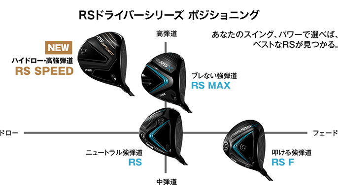 プロギア RS SPEED ドライバー の特徴ギリギリの驚初速に、加速するヘッド。Acceleration Technology(アクセラレーション・テクノロジー)が、パワーを引き出す。 飛距離をグングン伸ばす。最強のマッチングから生まれた高速ドライバー。 ![]() ![]() (風速150km/h=ヘッドスピード41m/s相当速度環境下での速度分布) RS SPEEDでは気流の乱れと広がりが少なく、空気抵抗が少ないことがわかる。 RS SPEEDは、RSシリーズで最もシャローフェース化し、スイング中の空気抵抗を限りなく小さくした。 ![]() ![]() ![]() 弾道コントロールシステム「X(クロス)カートリッジ」について本製品は、弾道コントロールシステム「X(クロス)カートリッジ」を搭載しています。ロフト・ライ可変機構により、弾道をコントロールし、シーズン、コース、コンディション に合わせた弾道調整を行うことができます。 また、ウェイトを変更する事で、クラブバランスの変更が可能になります。 ■ ロフト角・ライ角を変更することで、弾道をコントロールできます。 ![]() ■ ウェイトを変更する事で、クラブバランスの変更が可能になります。