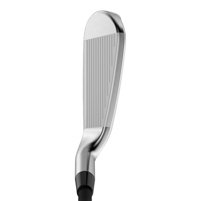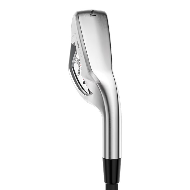 キャロウェイゴルフ QUANTUM MAX FAST アイアンの特徴Features &Benefits周囲すべてがアルファベットのJのような断面に「QUANTUM」のアイアンシリーズにおける最大の進化ポイントは、360°アンダーカット構造です。ヘッドの周りはすべて、アルファベットのJのように折り曲げられた断面を形成しています。また、フェースの溶接個所をよりフェースから離れた後方の位置に配置することで、従来のフェースカップ構造以上にフェース下部からトウ側の広い範囲でしっかりとたわみやすくなり、ボールの打ち出し角を高め、ボールスピードも向上。アベレージゴルファーに多いフェース下部でのミスヒットであっても、ボールが上がって充分な飛距離が得られ、適正なスピン量ももたらすことで、グリーンにボールを乗せる確率を高めています。心地良い打感をもたらすウレタン・マイクロスフィアフェース裏側の下部には、心地良い打感をもたらすウレタン・マイクロスフィアや適切な重量配分のためのボディウェイトが配置されていますが、注目すべきはその搭載方法です。前述のように、今回の「QUANTUM」のアイアンシリーズでは360°アンダーカットという構造が採用されていますが、ウレタン・マイクロスフィアはフェース下部のアンダーカットとウェイトとの間にL字型で挟まっているような状態となっています。ウェイトとフェース下部が直に接する部分を可能な限り少なくし、アンダーカット部分のたわみ効果を充分に発揮させるための措置です。キャロウェイが培ってきたAI設計も継続導入フェースには、キャロウェイが長年培ってきたAI設計(モデル・番手別専用設計)が導入されています。多くのゴルファーのリアルなスイングデータ、弾道データをインプットしながらAIが設計しているもので、フェースがインパクトでたわみやすくなった分、AI設計によるコントロールポイントがさらに強化され、弾道補正効果もこれまで以上に発揮されるようになりました。打点ごとに打ち出し角やスピン量などを最適化しつつ、安定したボールスピードを実現。より遠くの狭い着弾範囲へとボールを運んでくれます。キャロウェイが培ってきたAI設計も継続導入フェースには、キャロウェイが長年培ってきたAI設計(モデル・番手別専用設計)が導入されています。多くのゴルファーのリアルなスイングデータ、弾道データをインプットしながらAIが設計しているもので、フェースがインパクトでたわみやすくなった分、AI設計によるコントロールポイントがさらに強化され、弾道補正効果もこれまで以上に発揮されるようになりました。打点ごとに打ち出し角やスピン量などを最適化しつつ、安定したボールスピードを実現。より遠くの狭い着弾範囲へとボールを運んでくれます。ソールの面取りは、打点位置を考慮して最適化最近のキャロウェイのアイアンでは、ソールの面取りが高い評価を得ていますが、今回の「QUANTUM」のアイアンシリーズでは形状が少し変更されました。従来のリーディングエッジに施されていたものは櫛型をしていましたが、「QUANTUM」ではトウからヒールにかけて同じような幅で薄く面取りされています。打点が多少バラついても抜けの良さを実現するべく採用されたスタイルです。一方、トレーリングエッジ側は従来同様で、こちらもトウからヒールにかけて面取りが施されています。番手ラインアップは9本で、I#7がロフト28度の設定やさしさを感じさせるモデルである「QUANTUM MAX FASTアイアン」は、QUANTUM MAXアイアンと同じく、I#5〜9、PW、AW、GW、SWの9本という番手構成ですが、ロフト角は一部の番手で、よりストロングな設定となっています。ヘッド形状は、トウからヒールにかけての長さを感じさせる大きなものとなっており、QUANTUM MAXアイアンよりオフセットも大きめです。安心感は絶大で、バックフェースのデザインも、下部の厚みのある部分の面積が大きく、いかにも低重心でボールが上がりやすそうなスタイルとなっています。