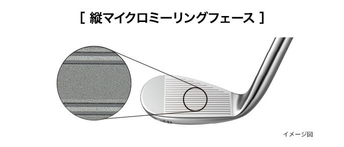 0 TOUR WEDGEは、フェース表面に縦目の微細なミーリングを加え、雨やラフからでも安定したスピン量が維持できるようにした。 |